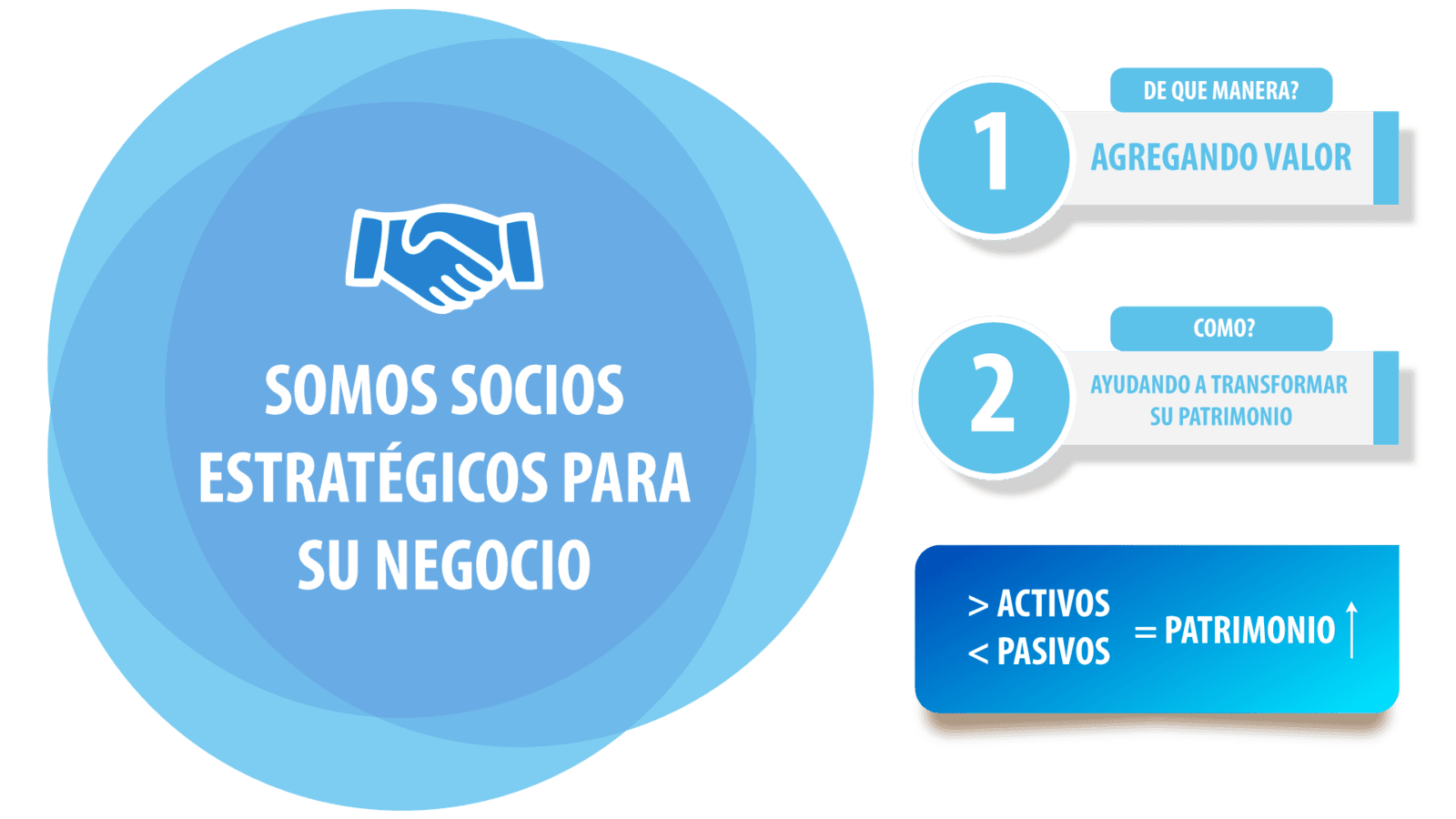 Generamos valor ayudando a incrementar sus activos reduciendo sus pasivos para fortalecer su patrimonio.